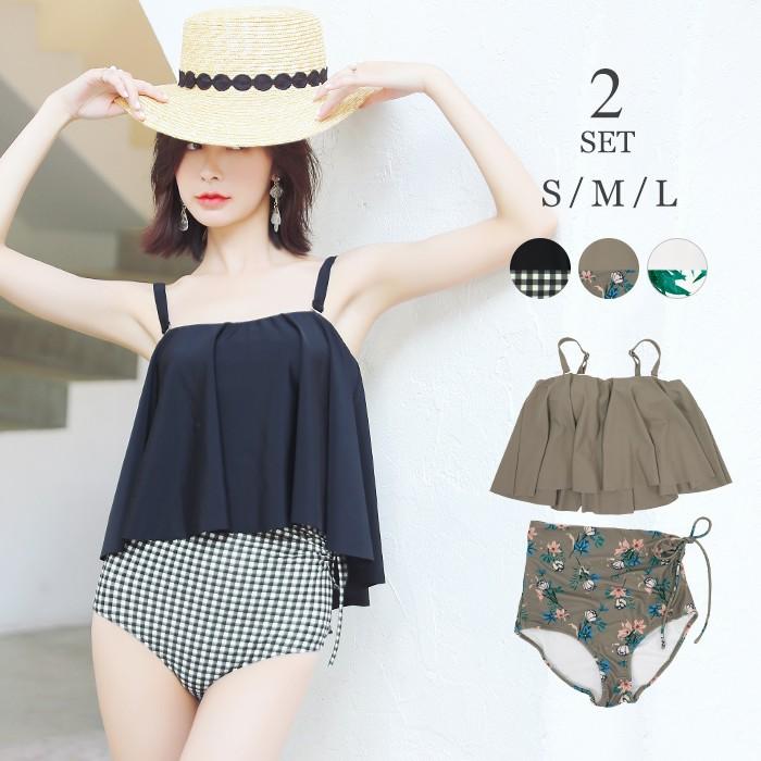 水着 ビキニ タンキニ レディース 体型カバー ハイウエスト フレアトップ セクシー 上下別 ホワイト ブラック 白 黒 カーキ 体型カバー水着 :swh1904:オシャRevo - 通販 - Yahoo!ショッピング