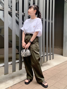 サンダルを使った「白×カーキ」の人気ファッションコーディネート - WEAR